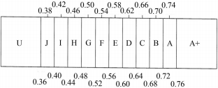 簡單來說,語音傳輸指數是衡量語音傳輸質量的一個指標,該參數可以較為全面反映混響時間、信噪比和回聲等對語言清晰度的影響,并且考慮了系統失真、心理聲學效果(掩蔽效應)等因素。它的值范圍為0~1,值越大說明清晰度越好。好的擴聲系統即使用在聲學條件較差的環境也能達到0.45到0.65的結果,而在聲學環境較好的場所,能達到0.70至0.90。更直觀的例子是,一間優秀的錄音棚內,從麥克風到監聽音箱之間典型的STI值能達到0.90至0.97。圖1所示為評定等級,圖中字母為等級名稱,上面數字代表該等級的STI中心值,下面數字代表該等級的STI邊界值。A+是極高的語言可懂度,A、B和C是高的語言可懂度,D是較好的語言可懂度,E是高品質的擴聲系統,F是較好品質的擴聲系統,G是語音報警系統的目標值,H是語音報警系統的正常下限,I是有限的語言可懂度,J和U是STI值太低,不宜用于擴聲系統。