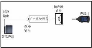 對場景2,預先錄制公告的擴聲系統如圖4所示。如果擴聲系統不含系統傳聲器而是直接通過播放器播放音頻,則需要通過外部信號發生器(智能聲源線路輸出)將STIPA信號輸入至系統中,通過調節擴音系統持續播放大小可調的STIPA測試信號。測量時,擴聲系統處于最高可用增益工作狀態,測試信號通過擴聲調音臺線路輸入擴聲系統,擴聲系統處于穩定工作狀態。